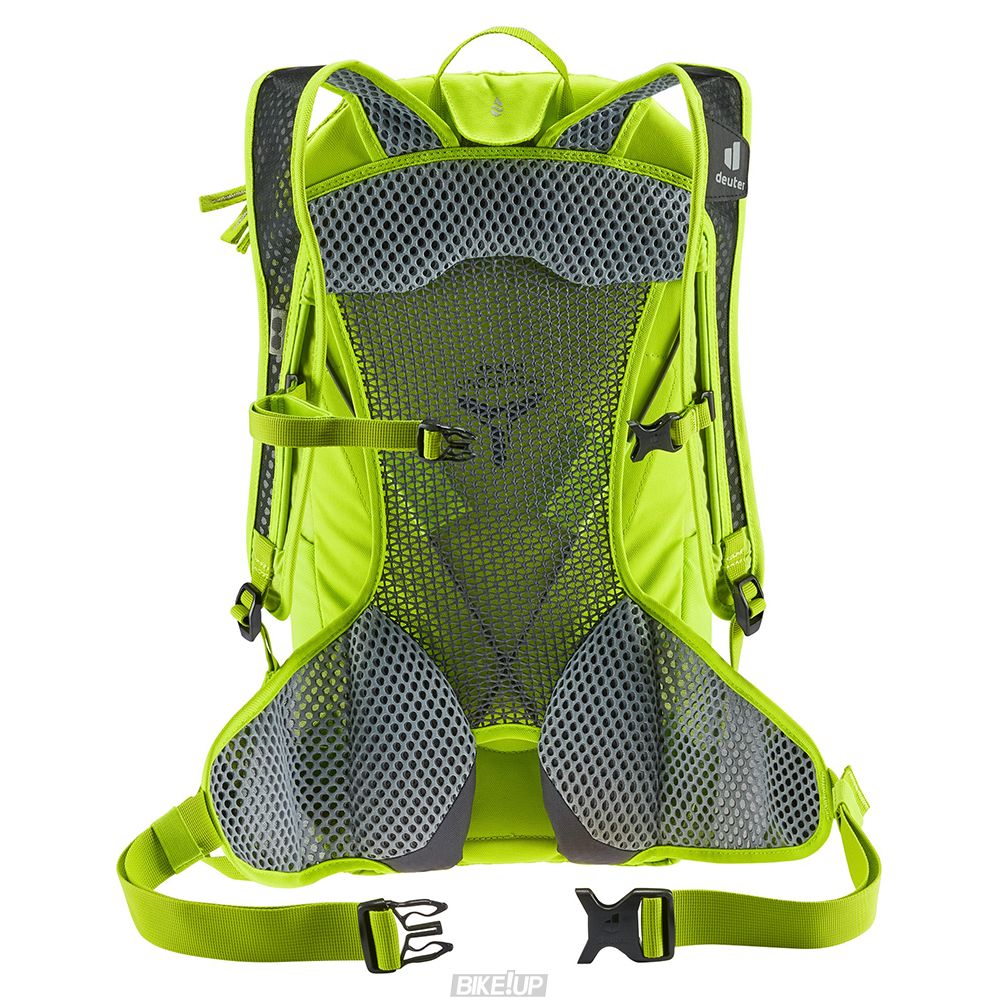 Ultra-light yet durable bike backpack with outstanding comfort for the weight. The deuter Aircomfort back system, designed specifically for biking, with a mesh back panel that’s split down the middle means that even less of the pack is in direct contact with the back, and makes more room for a rounded spine in riding position. The airy mesh hip fins, perforated shoulder straps and back padding ensure maximum airflow and a solid, snug fit. This climate neutral, PFC-free mountain biking pack uses bluesign® approved 100% recycled body fabric, and components made using environmentally friendly, resource-efficient manufacturing practices.