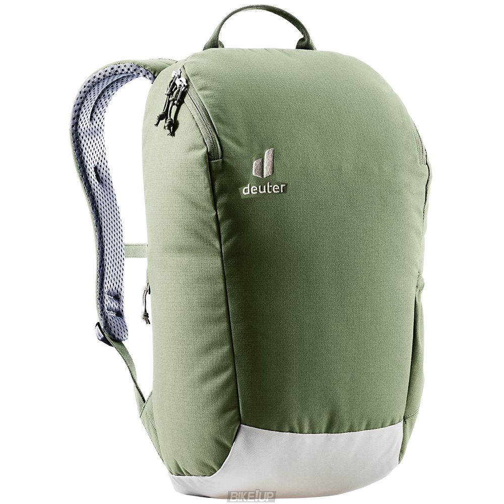 Featuring perforated, ergonomically formed shoulder straps and with the reduced contact surface of deuter’s Airstripes back system, the Stepout’s stand-out qualities are ventilation and carry comfort. A big U-shaped zipper opening at the top, cell phone pocket at the side against the back and stretch side pockets allow speedy access to important items. Inside there is a document pouch and laptop sleeve for more organized packing. The PFC-free fabric of this Green Button-certified bluesign® product is made from 100% recycled PET bottles (20 x 0.5-liter bottles) and according to bluesign® standards.