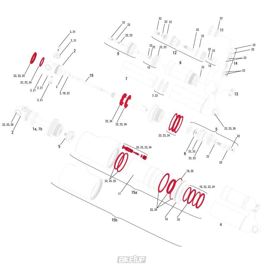 Service kit includes all spare parts for an air can service of RockShox Vivid Air rear shocks model year 2011.
