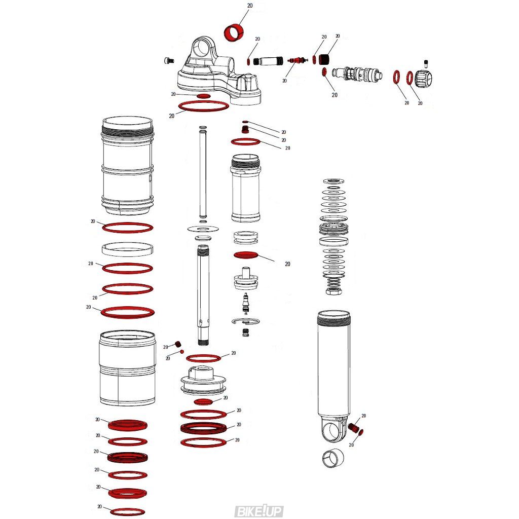 Full service kit for RockShox Monarch Plus B1 shox (model year 2014-2015).