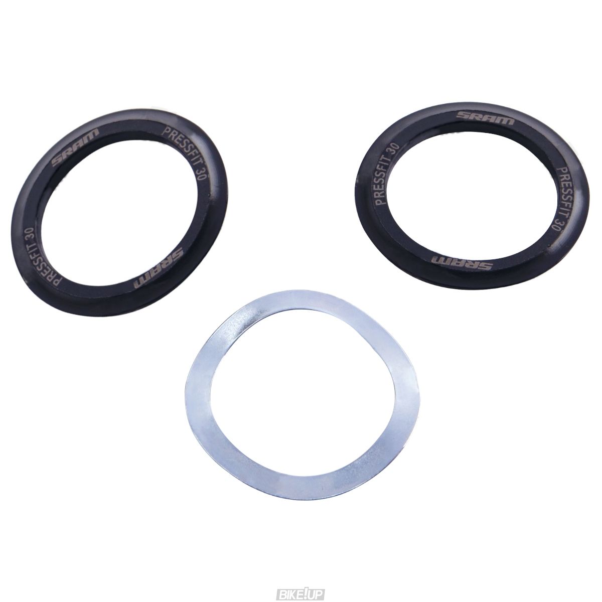 Shield and wave washer assembly for SRAM/Truvativ PF30 Pressfit bottom brackets.